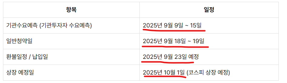 👉 상장 후 유통가능 주식수는 초기 약 21.53%이며, 보호예수 규정에 따라 유통 물량이 점차 확대됨 (6개월 후 ~95% 수준)