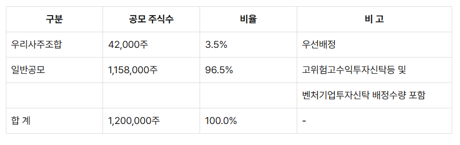 ● 일반청약자 배정물량은 우리 사주 조합 청약 결과에 따라 최대 360,000주까지 늘어날 수 있습니다.