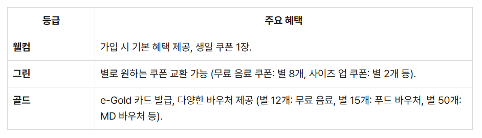 적립된 별을 통해 다양한 혜택을 직접 선택할 수 있는 시스템으로 2025년 6월에 개편되었습니다.1-1. 회원 등급 및 조건